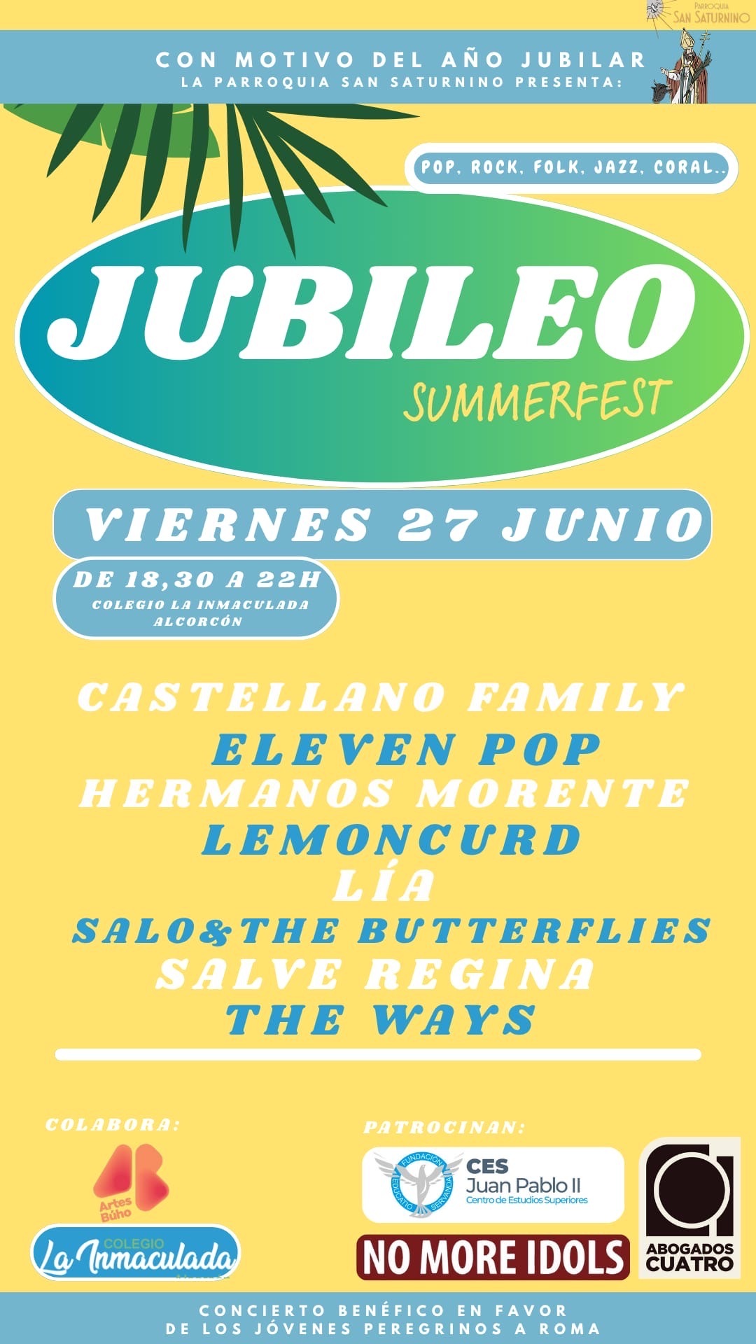 Este verano, el Jubileo Summerfest 2025 marcará una de las grandes citas culturales en Alcorcón. El evento se celebrará el viernes 27 de junio, de 19:00 a 22:00 horas, en el Salón de Actos del Colegio La Inmaculada, con una propuesta para todos los públicos y estilos musicales: pop, rock, folk, jazz y actuaciones corales.