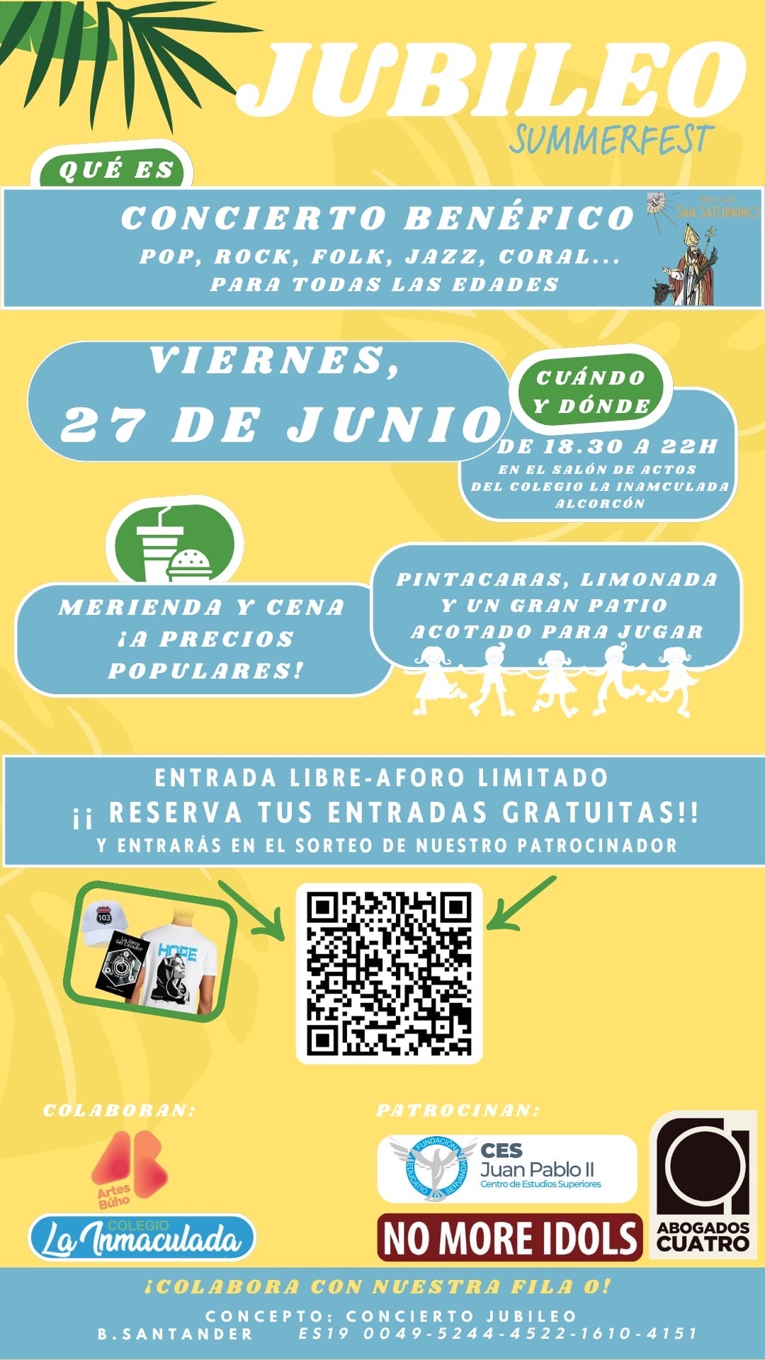 💬 Contacto solidario: Donaciones al nº de cuenta ES19 0049 5244 4522 1610 4151 (concepto: “Concierto Jubileo”)