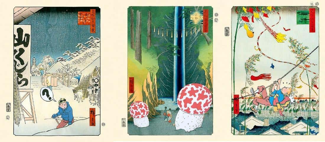 Si pensamos en el arte tradicional japonés uno de los primeros nombres que nos viene a la cabeza es el de Utagawa Hiroshige. Sus ilustraciones figuran en miles de estampas no sólo de oriente lejano, sino también de la cultura europea u occidental. Y si por el contrario nos preguntamos por uno de los personajes de cómic más influyentes del cómic del viejo continente del siglo pasado a buen seguro que Tintín estará en el top tres.