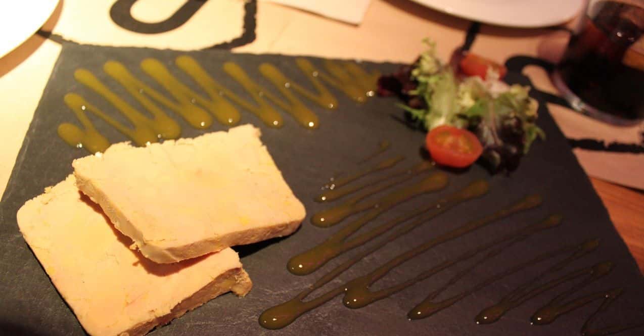 Nos llamó especialmente la atención el bocata de calamares con alioli de pera y ese pan tan característico cuyo color se lo proporciona la tinta del calamar; también nos pareció imprescindible el Tataki de solomillo de cerdo con salsa teriyaky o esta Terrina de foie con coulis de mango que tan buena pinta presenta: